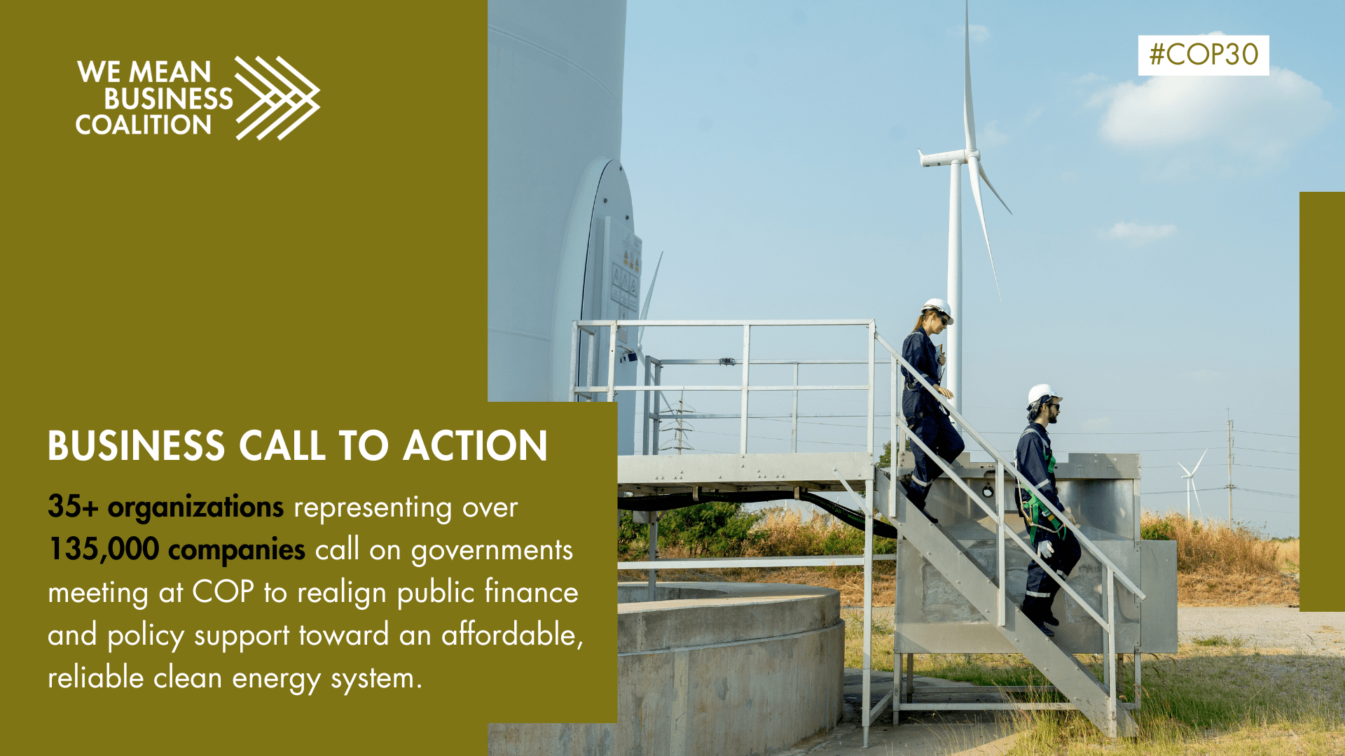 35+ organizations representing over 135,000 companies have signed We Mean Business Coalition’s COP30 Business Group Statement, calling on governments to realign public finance and policy support toward an affordable, reliable clean energy system.